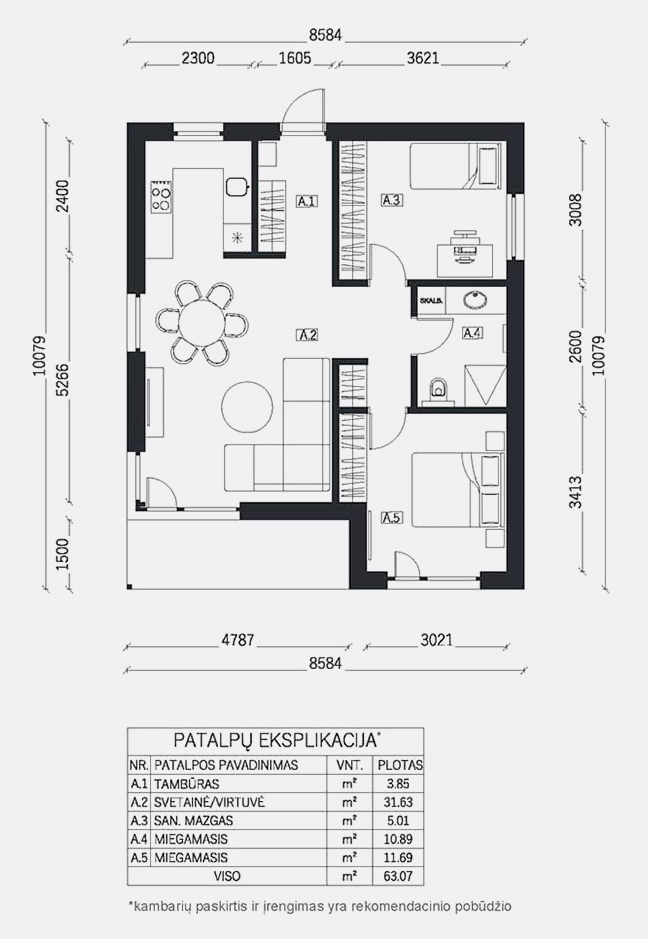 Bendras plotas 63 m²
