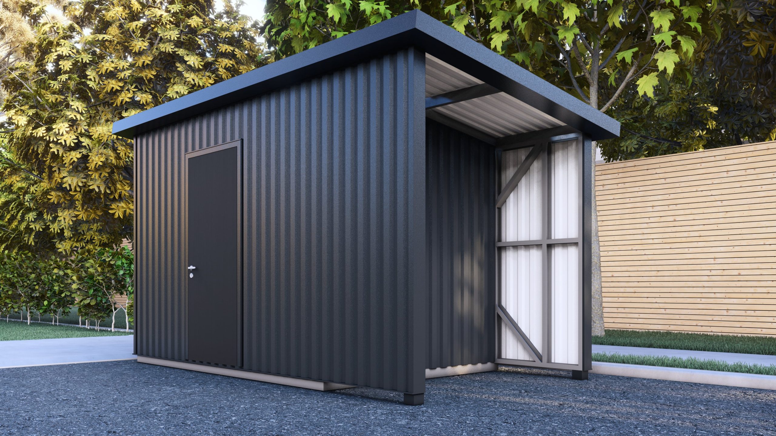 Sandėliukuose patogiai tilps sezoninė laisvalaikio ir sporto įranga (slidinėjimo, žvejybos, dviračiai) ar kiemo priežiūros technika (žoliapjovės, orapūtės), o įrengti šoniniai priestatai leis sukurti dar gražesnį Jūsų kiemo vaizdą, juose laikant rūšiavimo konteinerius.