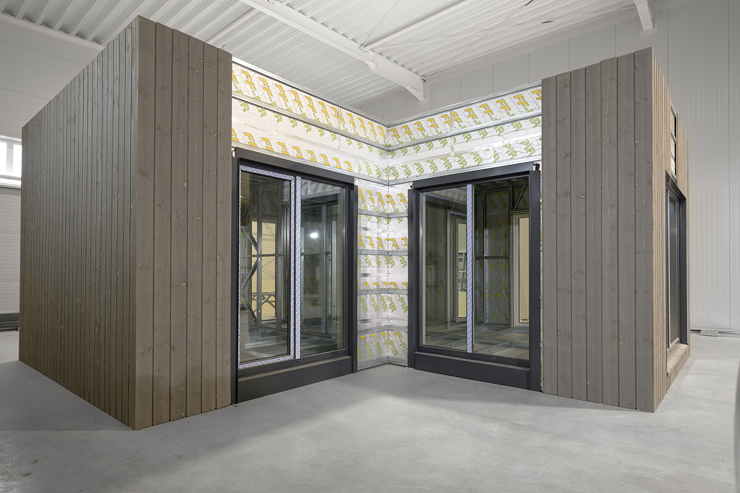 Namui būdingas tvirtas ir patikimas lengvojo plieno karkasas, kokybiška šilumos izoliacija (120 mm PIR + 75 mm akmens vata), o fasadas dekoruotas dažytomis eglės medienos dailylentėmis, kurios ne tik apsaugo konstrukciją, bet ir sukuria šiltą, natūralų vizualinį įspūdį. Tai išskirtinis dizaino sprendimas, derantis tiek miesto, tiek kaimo aplinkoje.
