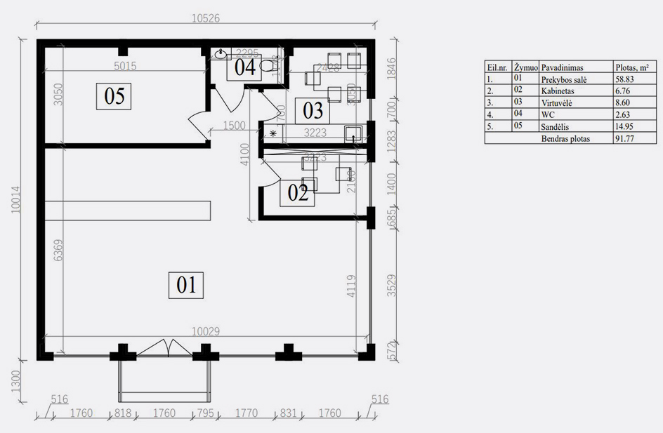 Susipažinkite su patalpų paskirtimi, išmatavimais ir bendru plotu.